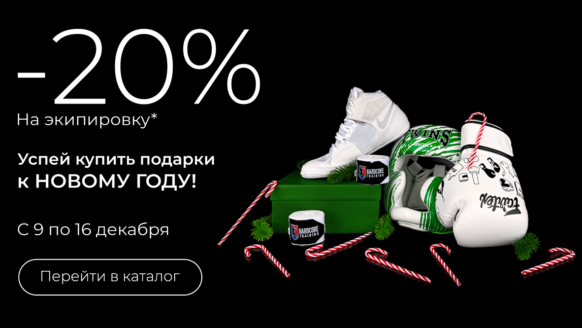 *Акция не распространяестся на категории: «Новинки», «Обувь», «Аксессуары», «Распродажа», «Тренировочные системы», «Подарочные сертификаты», «Спортивное питание», «Крема и мази», «Барахолка», «Мешки и груши», «Всё для дзюдо», «Тактическое снаряжение»;