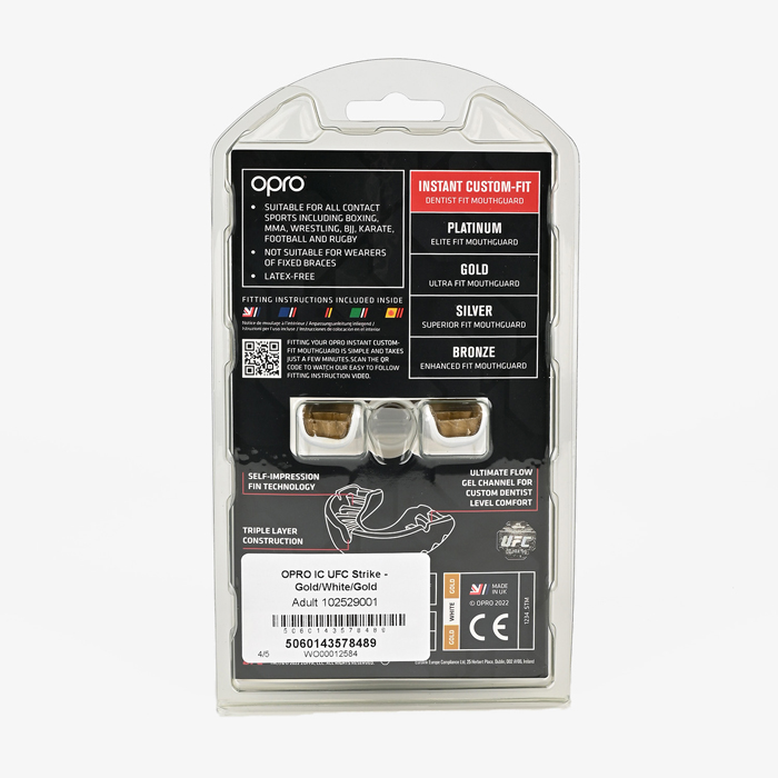 Боксерская капа Opro Instant Custom-Fit UFC Gold/White.